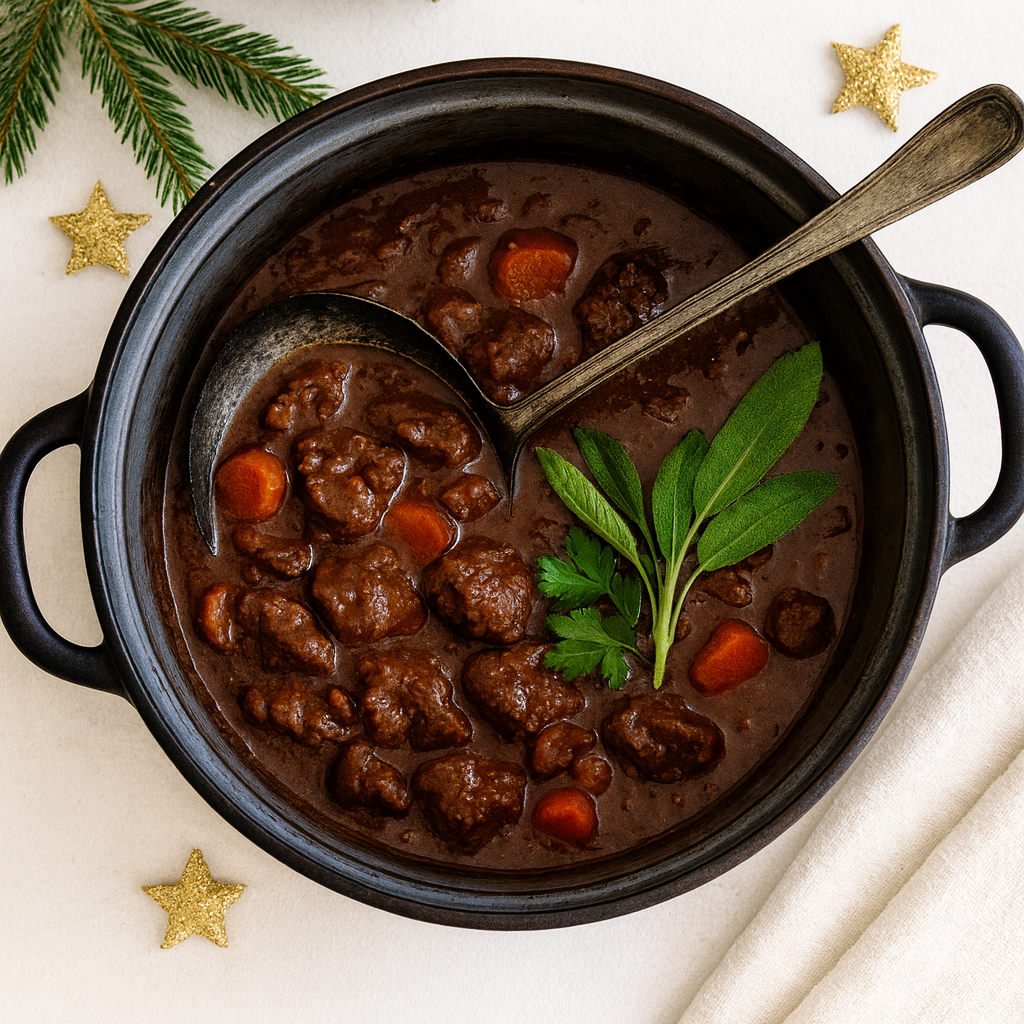 Een rijk gevulde melange van wildzwijn, zacht gestoofd in Bockbier.
